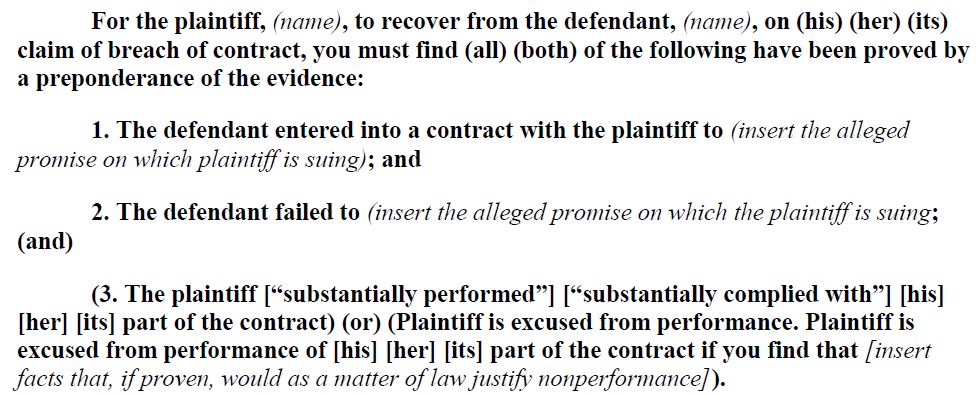 This is the general starting point for Colorado law that will be followed by the court (including judge or jury) or arbitrator in arbitration in any contract case . The law of breach of contract in Colorado is illustrated in the pattern jury instruction as follows: